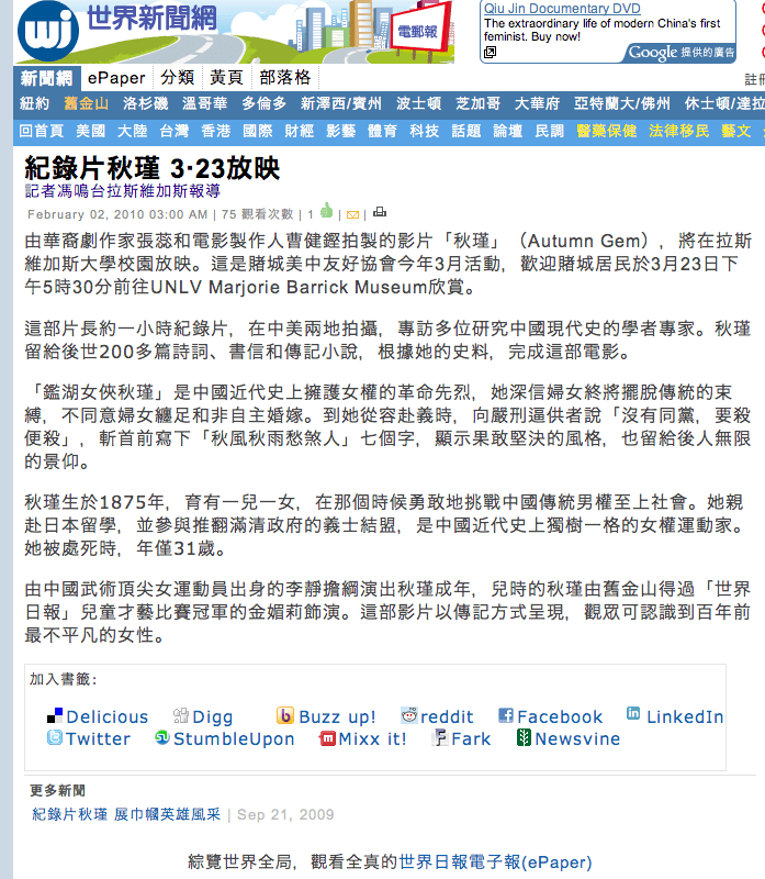 World Journal Article on Upcoming Las Vegas Screening Standard The World Journal has an article on our upcoming screening in Las Vegas. Check it out! Share this: Click to share on X (Opens in new window) X Click to share on Facebook (Opens in new window) Facebook Like Loading...